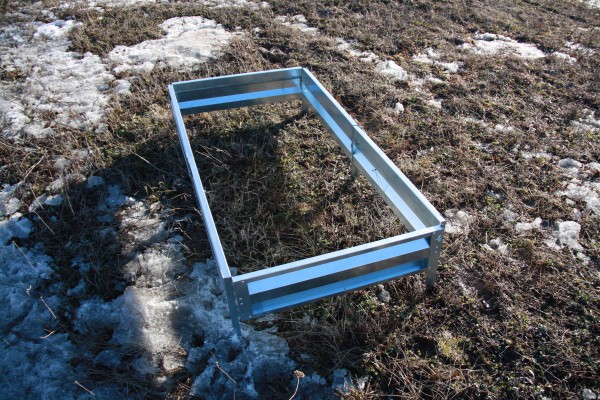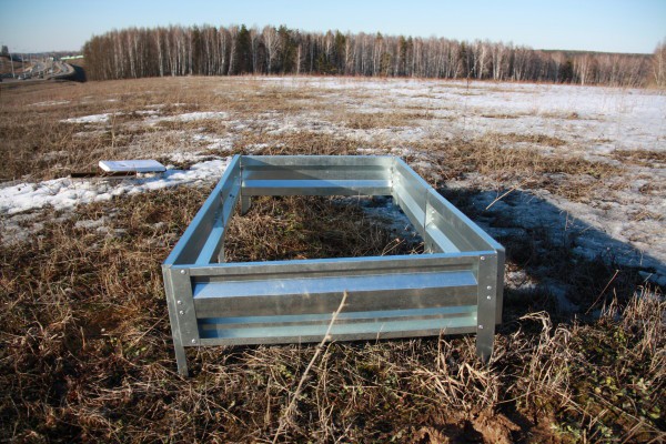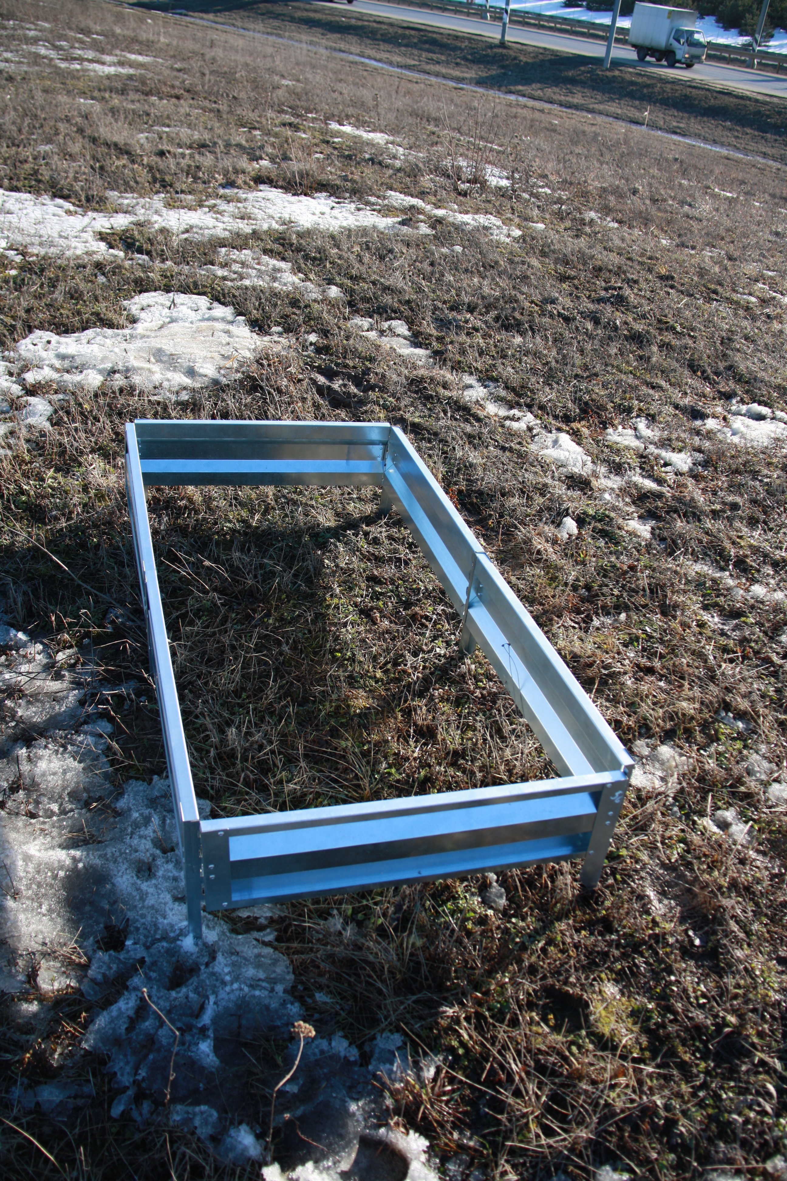 Обычные габариты металлической грядки составляют 2х0,19х0,08 метров. Изделия имеют 6 ребер жесткости, расположенных как поперечно, так и продольно.